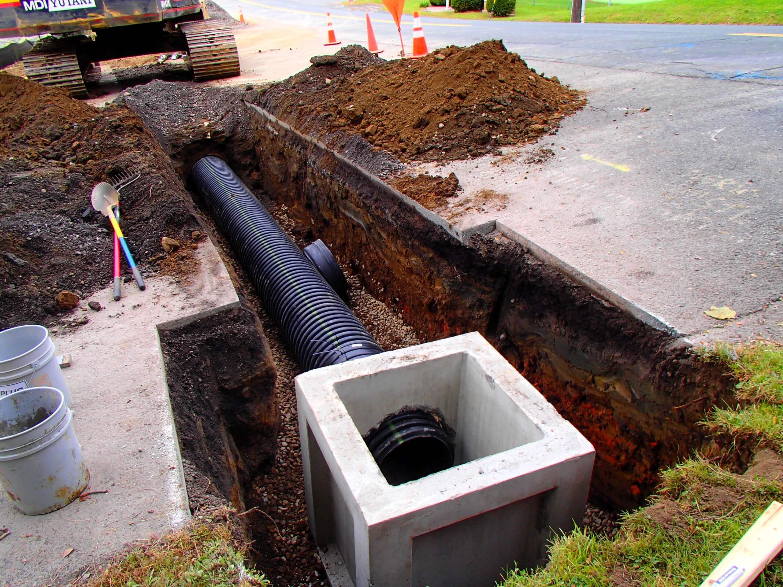 Protect your property with our comprehensive drainage solutions, from storm sewers to French drains.